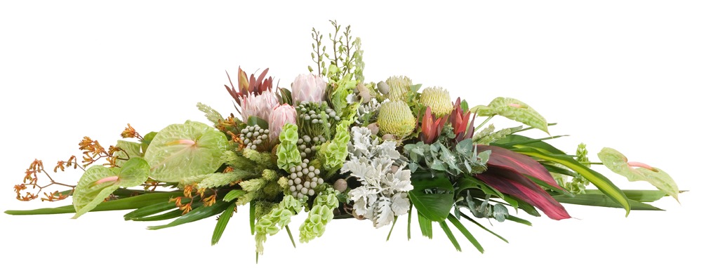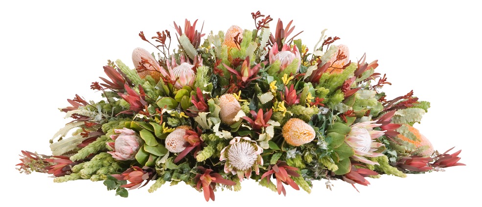 Double Ended Casket Spray 1.2m Proteas, Banksias and Kangaroo Paw.